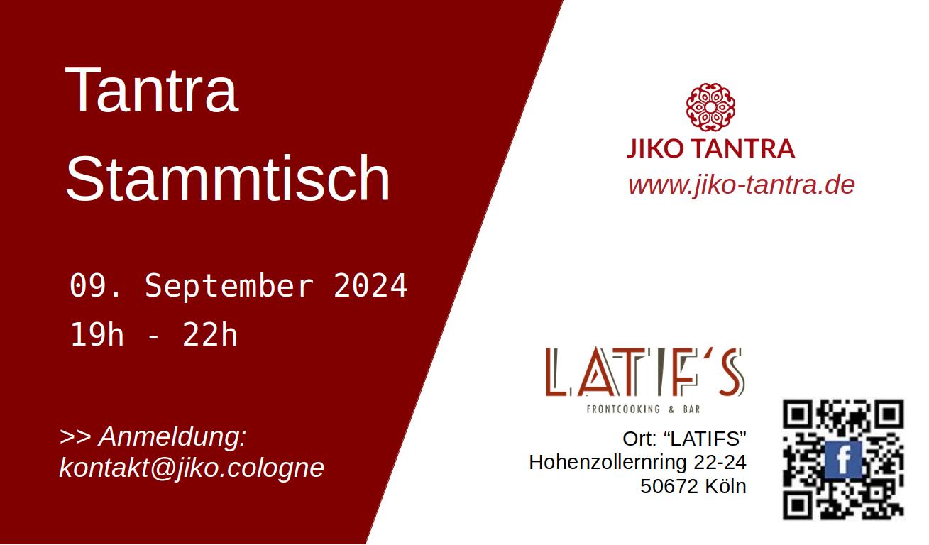 Anmeldung bis 18. September 2024 unter kontakt@jiko.cologne Eine Anmeldung ist aus organisatorischen Gründen notwendig. Teilweise werden unsere Stammtisch Abende mit kurzen Vorträgen und kleinen Übungen aus dem Tantrischen Kontext gefüllt!