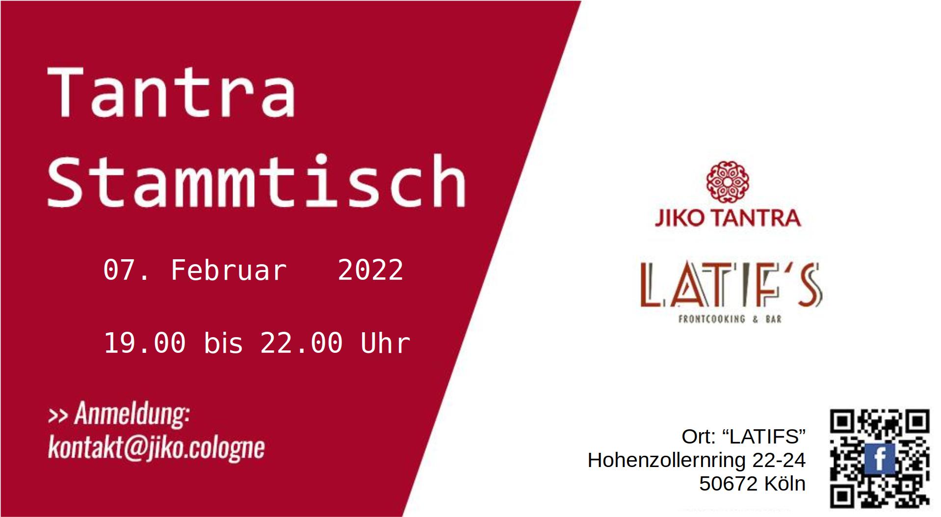 Der JIKO Tantra Stammtisch findet am 07. Februar 2022 von 19.00 bis 22.00 Uhr im „LATIF’s“ Frontcooking Bar Hohenzollernring 22-24, 50672 Köln statt.